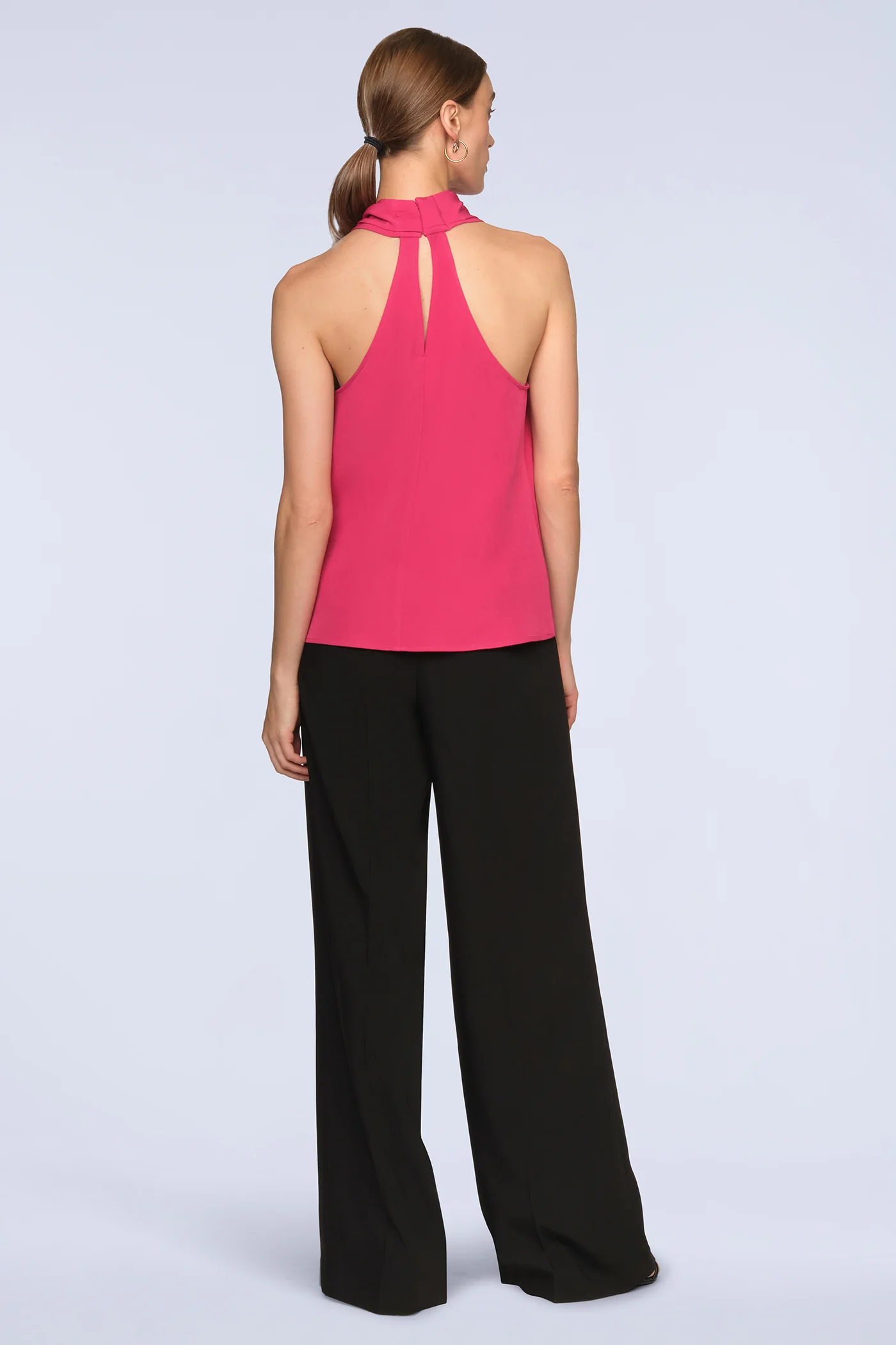 Asymmetric halter top crafted in smooth crepe with a clean, modern drape. Finished with side button detailing for a subtle twist. An easy pick for work, dinners, and everything in between.